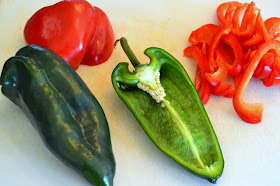 And this time I topped the nachos with delicious poblano and red bell peppers. It made me feel better about eating my Costo-size bag of chips!